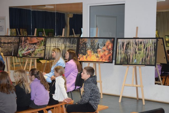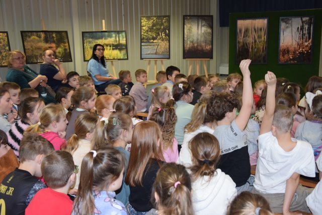 Zabawom edukacyjnym towarzyszyła wystawa fotograficzna Pana Krzysztofa Kozińskiego pod nazwą: „Światowy Dzień Wody 2026. Rezerwat Przyrody Torfowisko Borówki”.